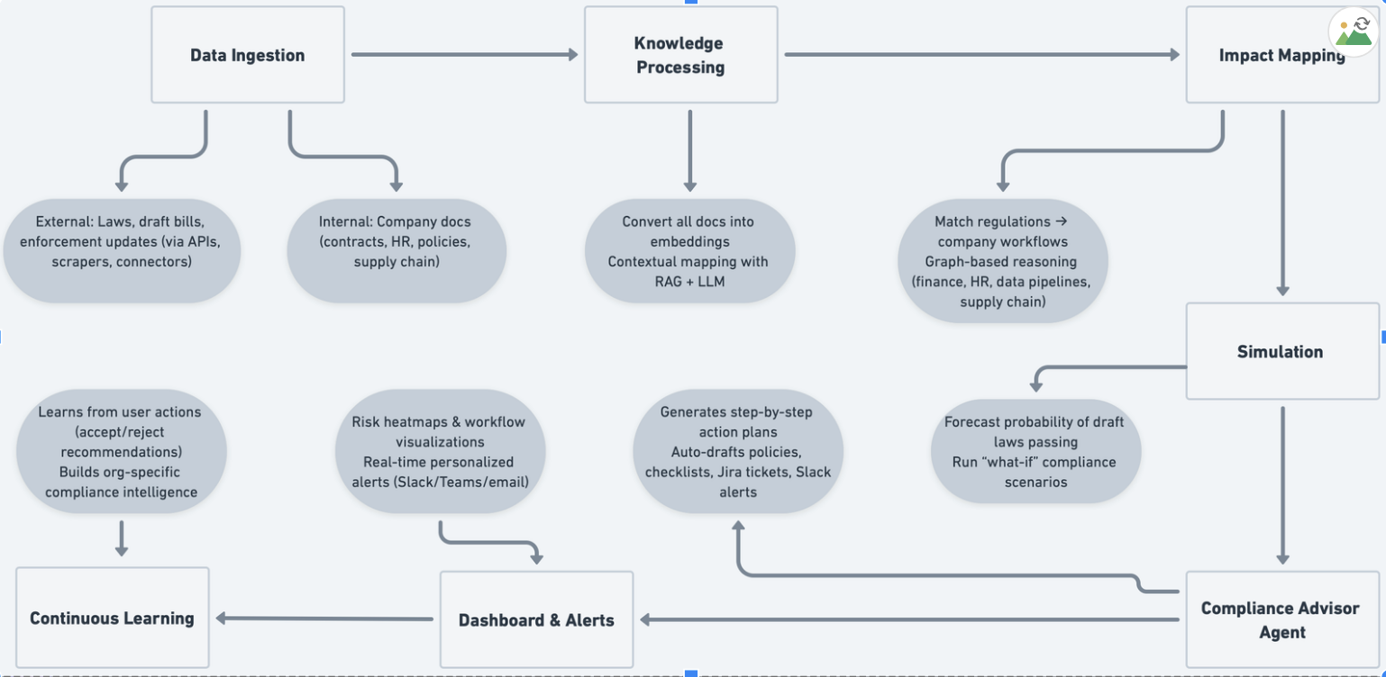 ChromaDB vector store enables precise, contextual retrieval of regulations relevant to each user's compliance profile.